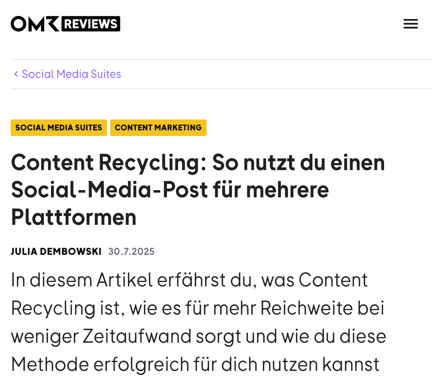 neulich ist mir aufgefallen, wie viele meiner bestehenden Inhalte ungenutzt bleiben: Beiträge, Ideen oder Social-Media-Posts, in die viel Zeit geflossen ist, verschwinden irgendwann im Archiv.